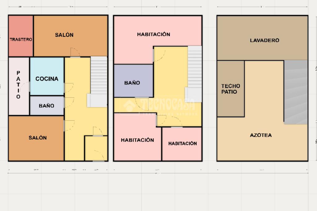 Planta baja: dos salones, cocina independiente, patio y trastero.