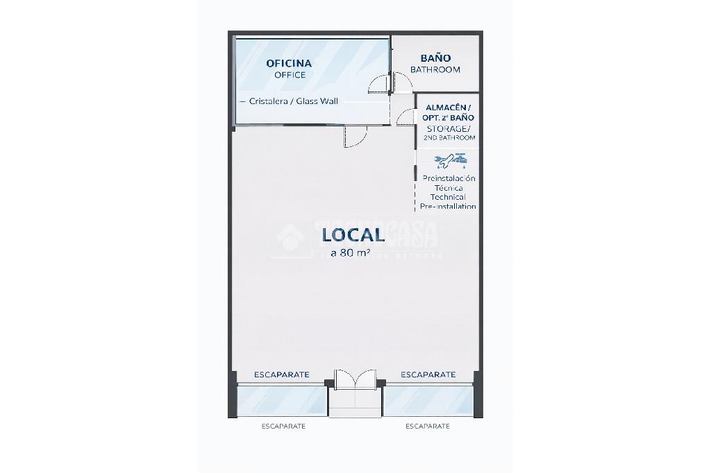 •Superficie: 80 m² diáfanos, con una distribución eficiente y versátil que se adapta fácilmente a cualquier tipo de actividad (comercio, oficina, hostelería, clínica, estética, etc. ).