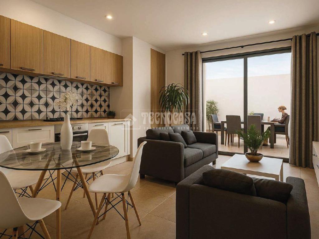 El diseño abierto une salón y cocina creando una zona elegante, versátil y funcional, perfecta para reuniones, descanso y vida diaria.